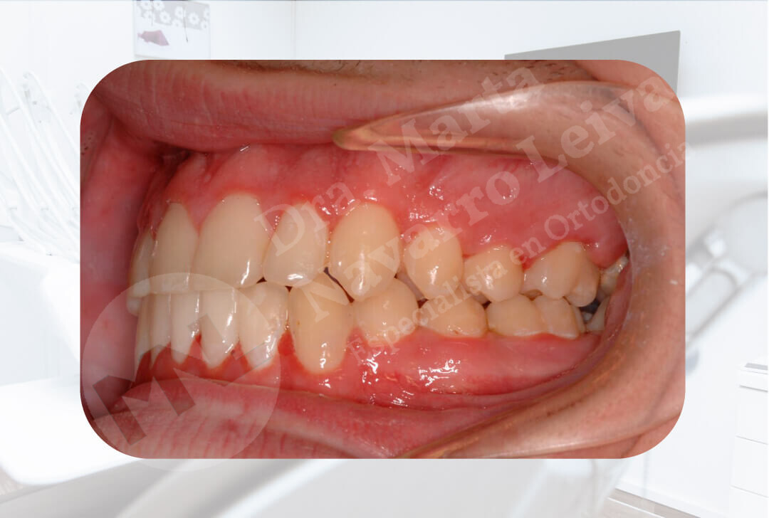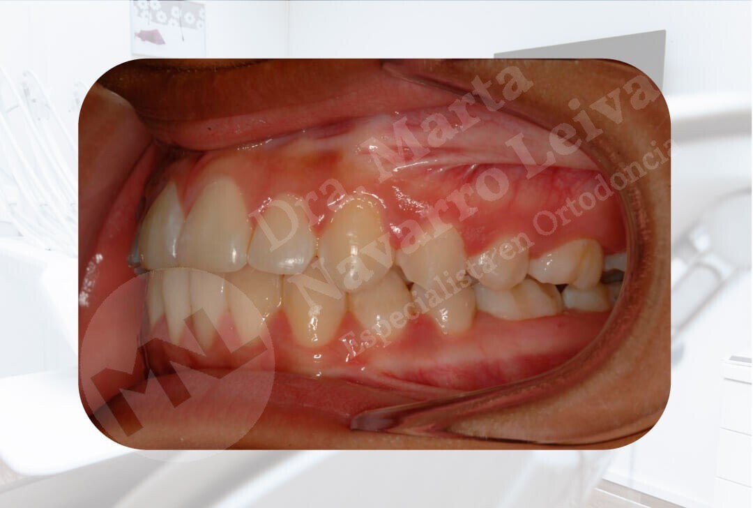 Los dientes de arriba muerden por delante de los dientes de abajo. Puede ser de causa dental o esquélética.
